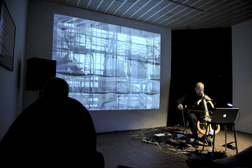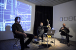 The Quey Percussion Duo were featured at the Performing Arts Institute of Wyoming Seminary Kingston, PA on August 1. Included in their program was a new version of "Window Schedule", which Gene has revised for the performance. (Seen here is the new animation with the soundtrack from the original Premier performance of November 2006). RELIQUARY Boston Cyberarts performance @ AXIOM GALLERY. Jeff gave a great performance of the solo version of Reliquary at Axiom Gallery to an enthusiastic group with spill-over from folks at the Megapolis Festival tuesday night. See pics by Rob Coshow (left) and read the Cyberarts blog here. We were pleased to participate in the festival and share a Q&A session with the audience. Reliquary Solo version @ AXIOM Gallery, Boston, MA. 7:30, April 28, 2009. Boston Cyberarts Festival. Gene was interviewed by Nina J. Berger on the Cyberarts blog...stay tuned... Jeff performed "tyvek recycled", an improvisation with footage from the "Underwraps" section @ Capitol Community in Hartford, CT. A recording of the piece can be heard at acdcvc on YouTube. Parallel Media at the New Creativity Symposium, Connecticut College, New London, CT....