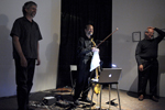 We have updated the premier page and remixed the premier performance audio for these clips. We have edited documentation of the premier performance from last November. It is posted on the front page of the site as "premier performance". These clips approximate the live event with multiple video channels. May 20. 2007 Jeff is developing a solo piece based on the composition and video from the Under Wraps section of Reliquary. He will incorporate this into his touring solo performance repertoire in the near future. November 12, 2006 New Thoughts, New Music: Measure for Measure is a podcast series hosted by Phil Blackburn. This installment features Ken speaking very articulately about the project; collaboration and podcast features. This is a feature on the American Composers Forum site that you can subscribe to. Listen to the podcast here. September 01, 2006 We're very happy to announce that Lief Ellis will be joining the Reliquary of Labor project as our Real-time Physical Computing Integration Specialist. Internally we are referring to him as The Integrator. Lief will be responsible for the integration of a variety of sensors: pressure, light, accelerometers etc., that we will be using in conjunction with a Teabox (from ElectroTap) and MAX/MSP. We are very excited and relieved to have found such capable hands to take care of this important aspect of our upcoming premiere performance. August 12, 2006 Digital press materials are now available on the site's press page. Included are a press release, high and low res jpegs, "logo" images and a flash movie from the site's flash page. The images are from our April preview at the New Britain Museum as well as video stills from the project. More will become available soon.... August 02, 2006 HB Group of North Haven, CT has generously agreed to provide technical video and audio support for the residencies and performances at the Museum. We are grateful to Donald Guzauckas, Jr., general manager of HB, for his comittment to supporting the arts in our region. We have acquired custom video production gear from the studios of Dave Jones Design which will enable synchronous multi-channel DVD and video switching and display. Dave has produced the switcher to be compatible with MAX/MSP architecture and can be operated using manual triggering, MIDI interface or pre-programmed. Dave's most visible work has been with video artists Gary Hill, Diana Thater and Laurie Anderson. He's a wizard and very artist-friendly. June 01, 2006 Jeff joined Gene and Ken at the MacDowell Colony for a couple of days to experiment and work on Reliquary. Listen to the preview performance of one section that we gave at the colony on 05.30.06.